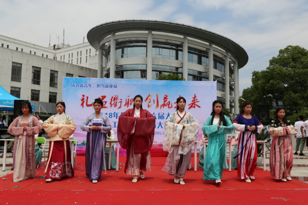 古典舞《锦鲤抄》、职业装展示《知行合一》、朗诵《衢州,一枝独秀》、瑜伽表演《小幸运》、汉服秀《寻艺记》……经济管理学院杜拉拉训练营第一期学员的结业汇报演出紧随其后,为此次开幕式增添了鲜丽、明媚的色彩。