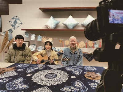 2月底在抖音直播室给大家上过课的大学生顾霓桑,3月5日带着吉他来到了衢州市特殊教育学校。她和这里的两位学生约好,要录制一段短视频。